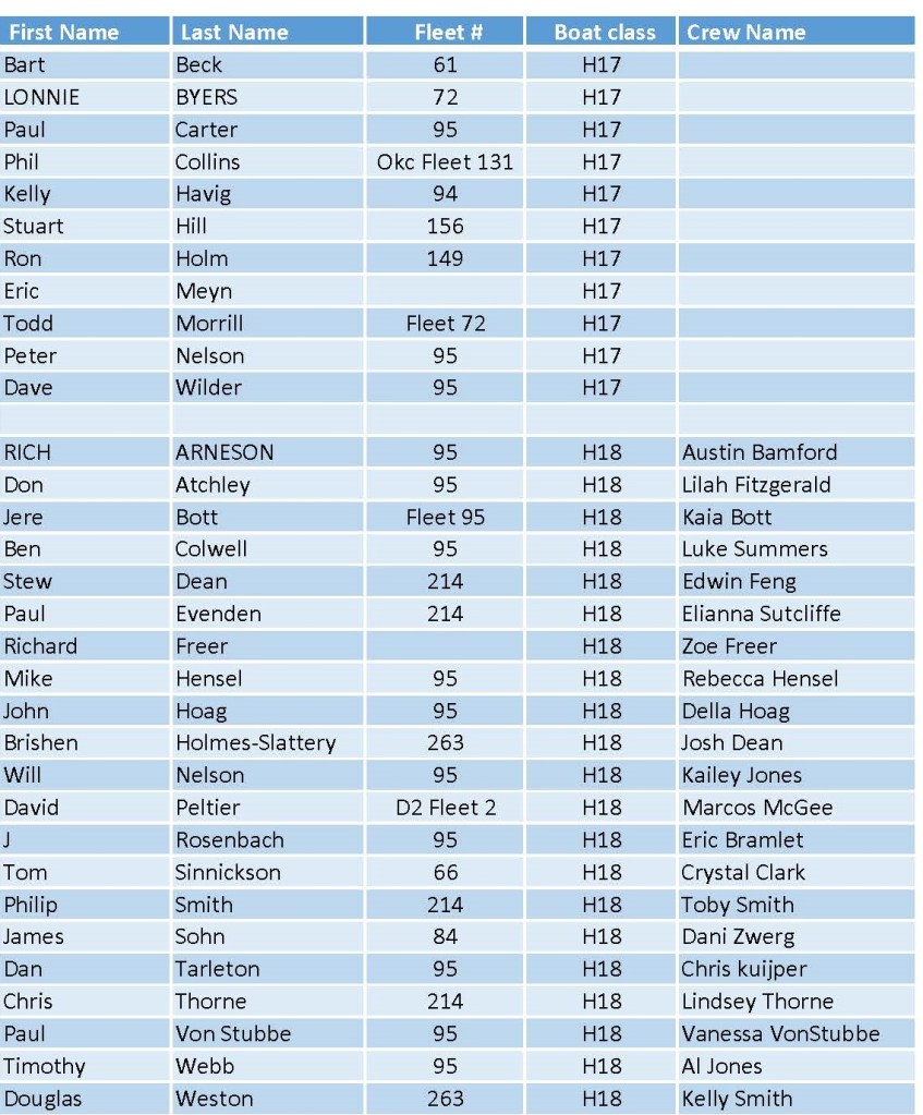 And for those attending the Division regatta on the weekend prior, here is the current list for that event…