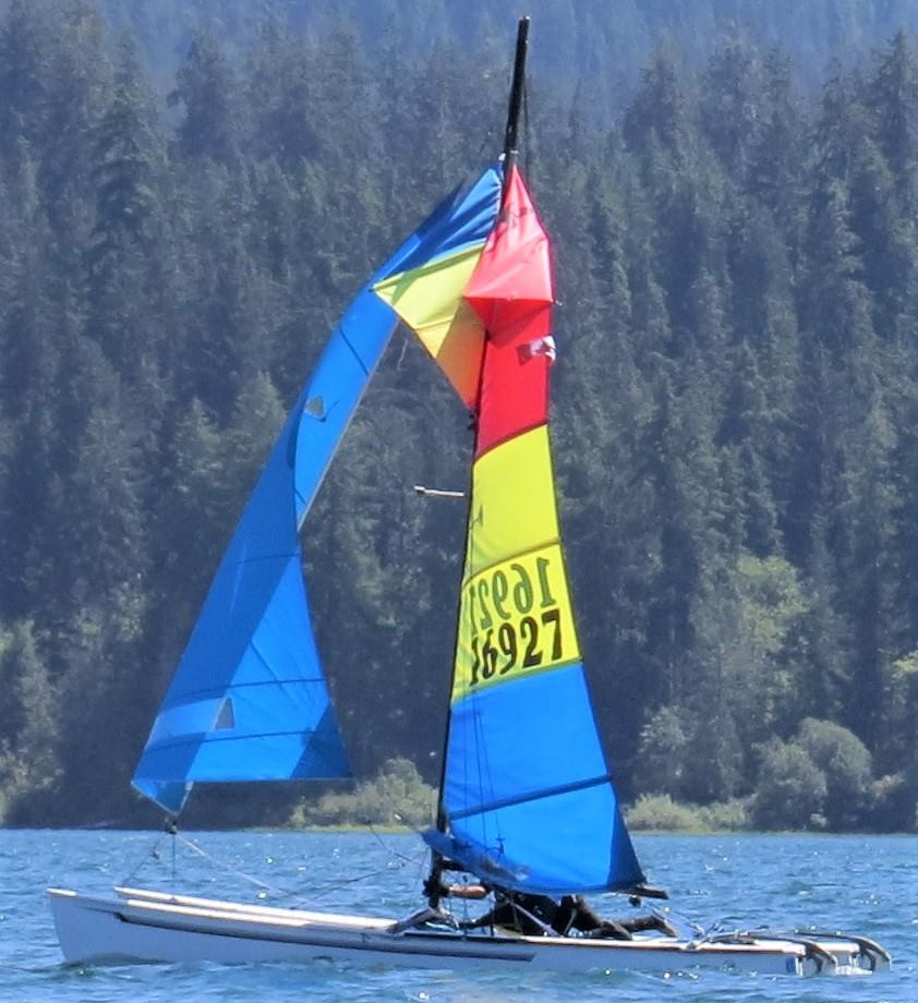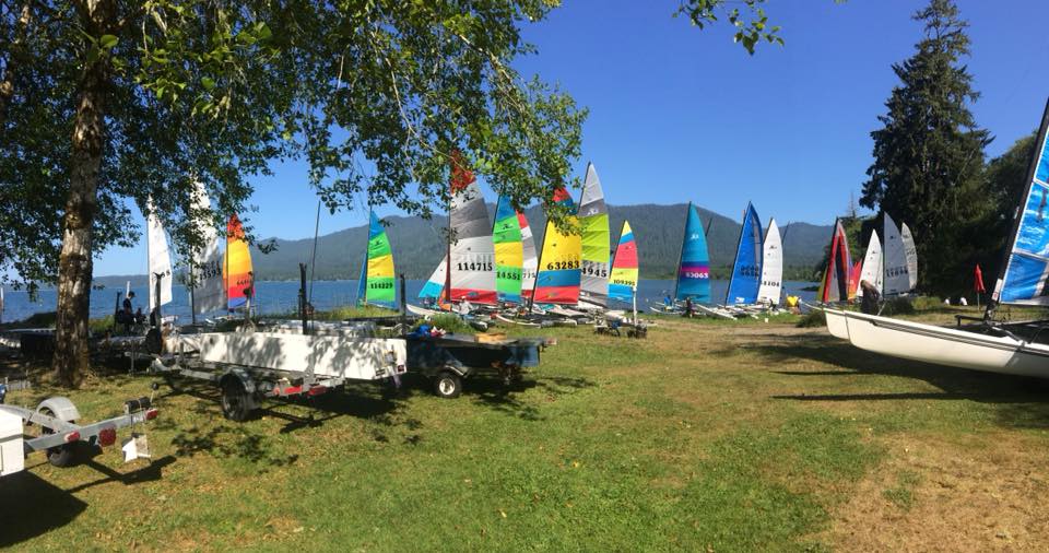What a venue! PNW sailors were treated to another epic weekend at Lake Quinault the weekend of July 14-15. Hot weather inland brought the Quinault doctor in on time Saturday with first race off around 11:30. Pro PRO Charley Rathkopf ran 6 races in medium breeze that delighted all 30 boats and the 2 Miracle 20s and Wagz’ 16 who showed but didn’t race.